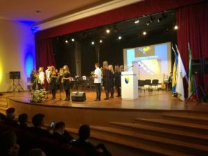 Petak, 24.novembar 2017.godine: Svečanom akademijom upriličenom u čast domovine BiH večeras je u velikoj sali Doma kulture Kakanj obilježen 25. novembar – Dan državnosti BiH. Nakon himne BiH koju je svirala Rudarska glazba, prisutnima su se obratili načelnik Općine Kakanj Nermin Mandra i predsjedavajući Općinskog vijeća Slaven Katičić.